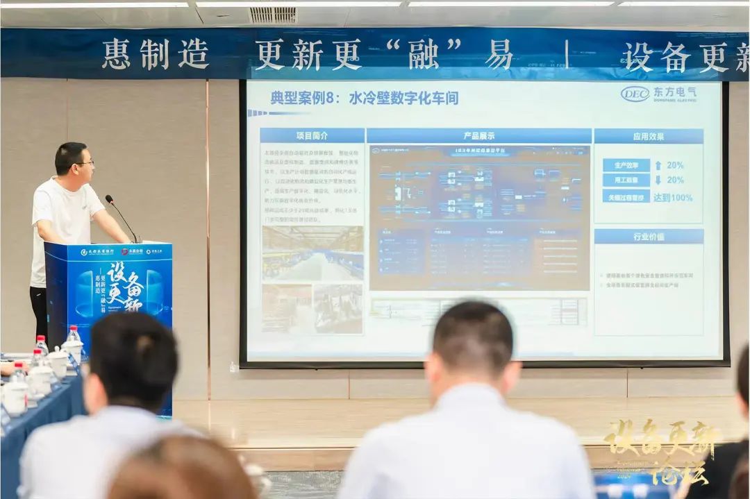 會上,成都農(nóng)商銀行、永贏金租、金控融資租賃、成都再擔(dān)保等金融機(jī)構(gòu)分別公布了設(shè)備更新專項金融服務(wù)方案,推出設(shè)備直租、回租、陽光租等金融產(chǎn)品,“惠蓉貸”助力“惠制造”提質(zhì)增效方案及交子·融易通賦能產(chǎn)業(yè)高質(zhì)量發(fā)展方案。相關(guān)領(lǐng)域企業(yè)代表分享了生產(chǎn)線技術(shù)改造實例、智能制造解決方案等內(nèi)容。
